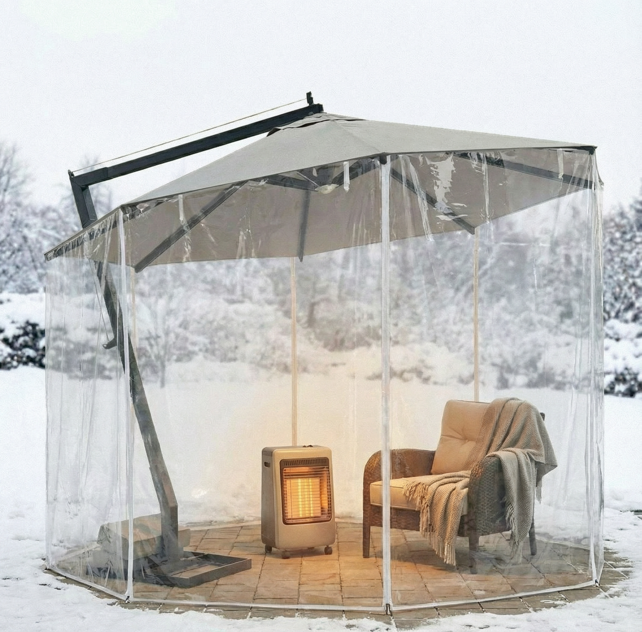 این سایبان انتخابی ایدهآل برای استفاده در زمستان و تابستان است؛ بهطوری که در فصول سرد، گرمای محیط زیر چتر حفظ شده و در روزهای گرم تابستان، با کاهش تبادل هوای گرم، فضایی خنکتر و مطبوعتر ایجاد میشود. ترکیب طراحی پایه کنار، قطر ۳ متری و طلق محافظ، این محصول را به گزینهای ممتاز برای ویلا، باغ، کافهها، رستورانهای فضای باز، تراس و حیاط تبدیل کرده است.