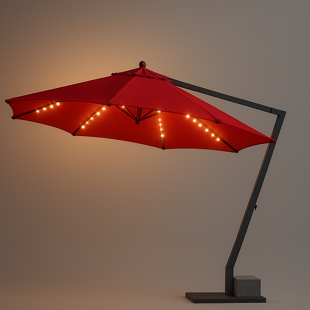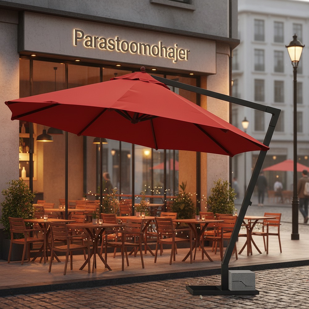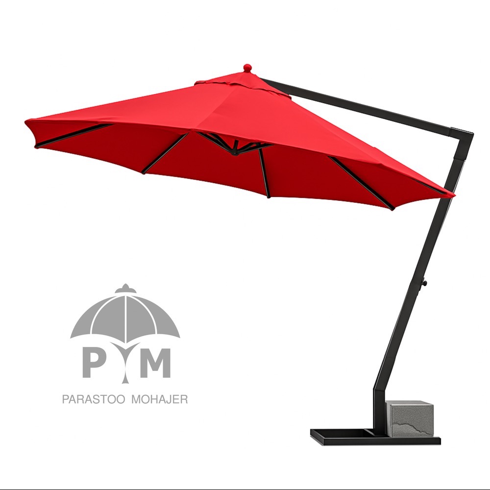 - آزادی فضا: به دلیل قرارگیری پایه در کنار، میزها و صندلیها دقیقاً زیر چتر قرار میگیرند و بیشترین استفاده از فضای سایهدار انجام میشود.